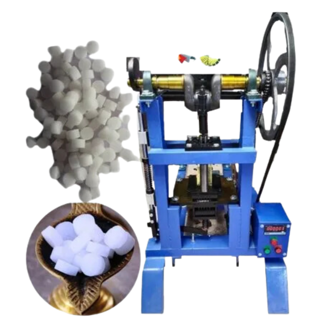 A Kapur/Camphor making machine is a specialized device designed to efficiently produce kapur or camphor tablets. Kapur, also known as camphor, is a crystalline substance with a strong aromatic fragrance and various applications in religious rituals, medicinal practices, and other cultural traditions.